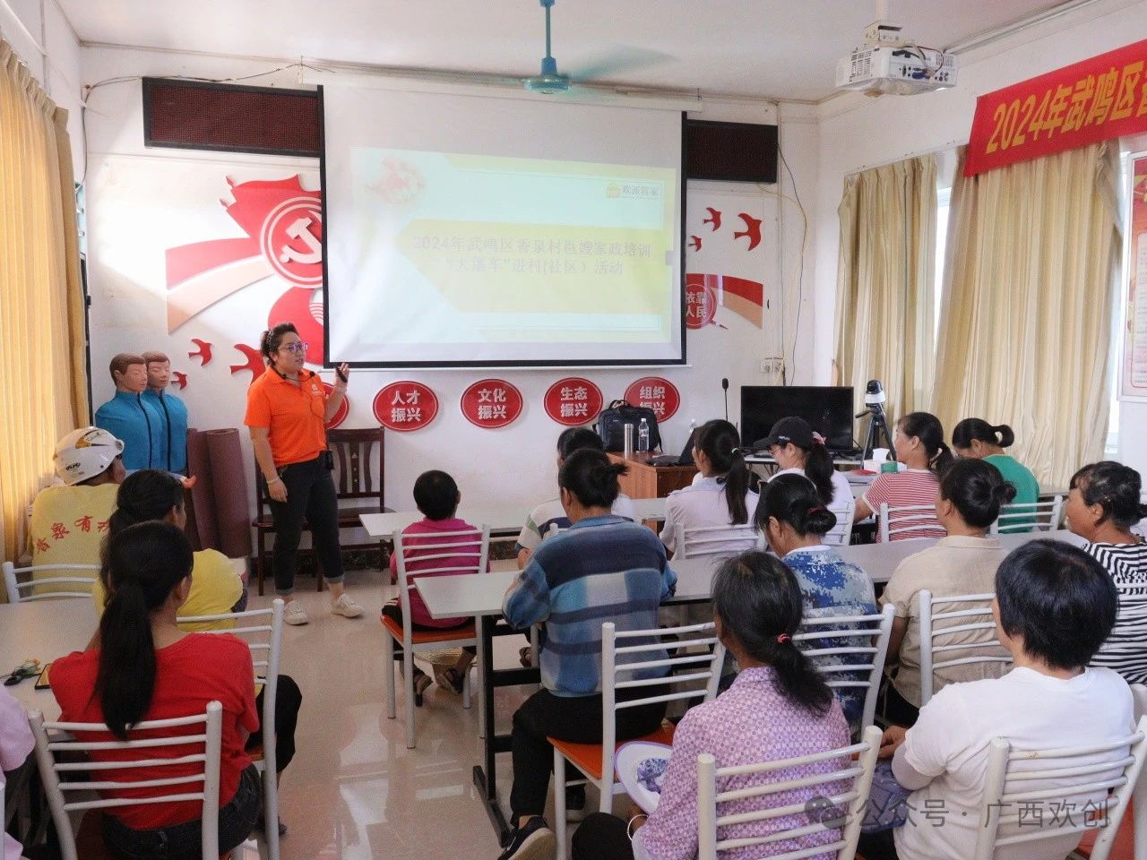 2024年9月14日,由南宁市妇联主办,南宁市巾帼家庭服务行业协会、广西欢创子公司--广西欢派家庭服务有限公司承办的“2024年武鸣区香泉村邕嫂家政培训“大篷车”进村(社区)活动”在武鸣区香泉村举办,吸引85余名村民参加。