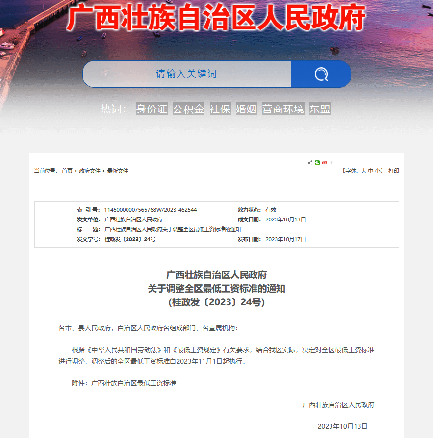 • 确定了!2023年广西最低工资标准,一类地区调到1990元/月,11月1日起生效!