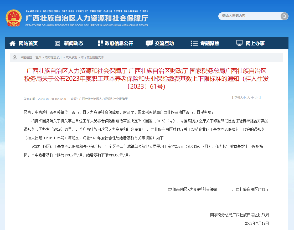 • 定了!2023年广西基本养老和失业保险缴费基数上下限标准发布!